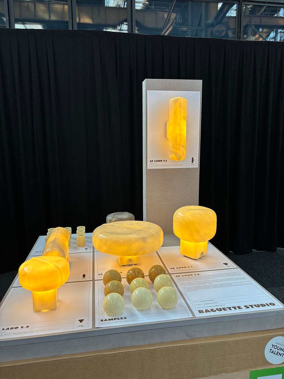 Bij Baguette Studio draaide alles om licht, materiaal en sfeer. De organisch gevormde lampen vallen direct op door hun zachte, warme gloed en sculpturale vormen. Wat deze ontwerpen extra bijzonder maakt, is dat de lampen zijn gemaakt van wax.