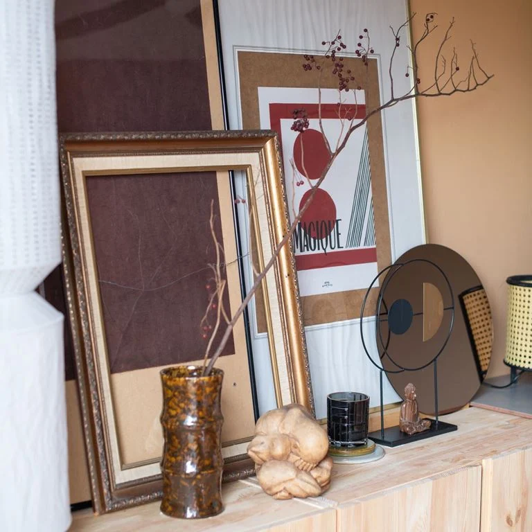Jaleesa is dol op vintage items, waardoor hun huis een verzameling is van bijzondere vondsten. De witte lamp met retro kap in de woonkamer is een van haar favorieten, net als de marmeren salontafel. "Deze is van de zus van mijn oma geweest. Niemand wilde hem hebben, maar ik zag er iets moois in. Ik heb hem opgeschuurd en het marmeren blad omgekeerd, zodat het ruwe deel boven ligt." Nu pronkt hij als eyecatcher in de woonkamer. Daarnaast is hun pastelkleurige interieur gevuld met bijzondere vazen die ze vond bij de kringloopwinkel. Ook al is Jaleesa dagelijks bezig met het inkopen van de nieuwste interieurcollecties, ze houdt een zwak voor vintage parels! Haar favoriete merk bij fonQ? Dat is het Nederlandse HKliving: "De items zijn nieuw, maar hebben een vintage look, daar hou ik van."