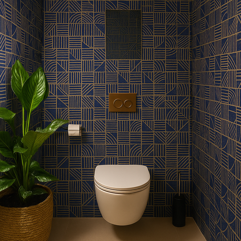 Interieur Converter: alle tegels vervangen door de tegel Mater Segno Blue by Patricia Urquiola van KeraStone